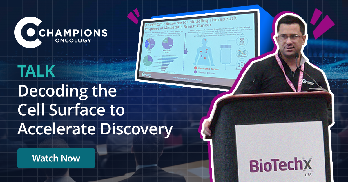 Gain access to Mike Ritchie’s complete talk and downloadable slide deck to see how Champions Oncology is transforming oncology research through advanced cell surface proteomics and multi-omic integration.
